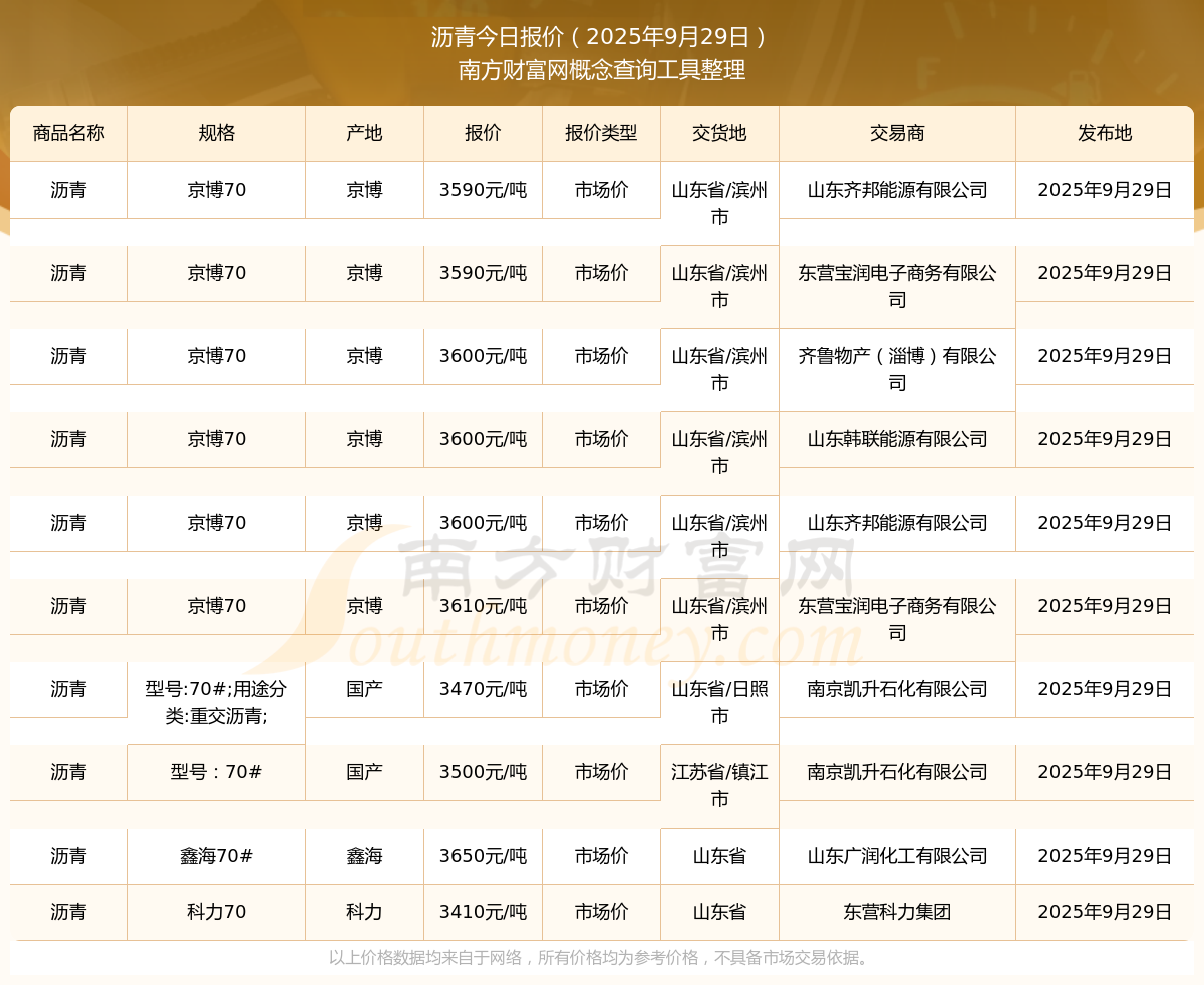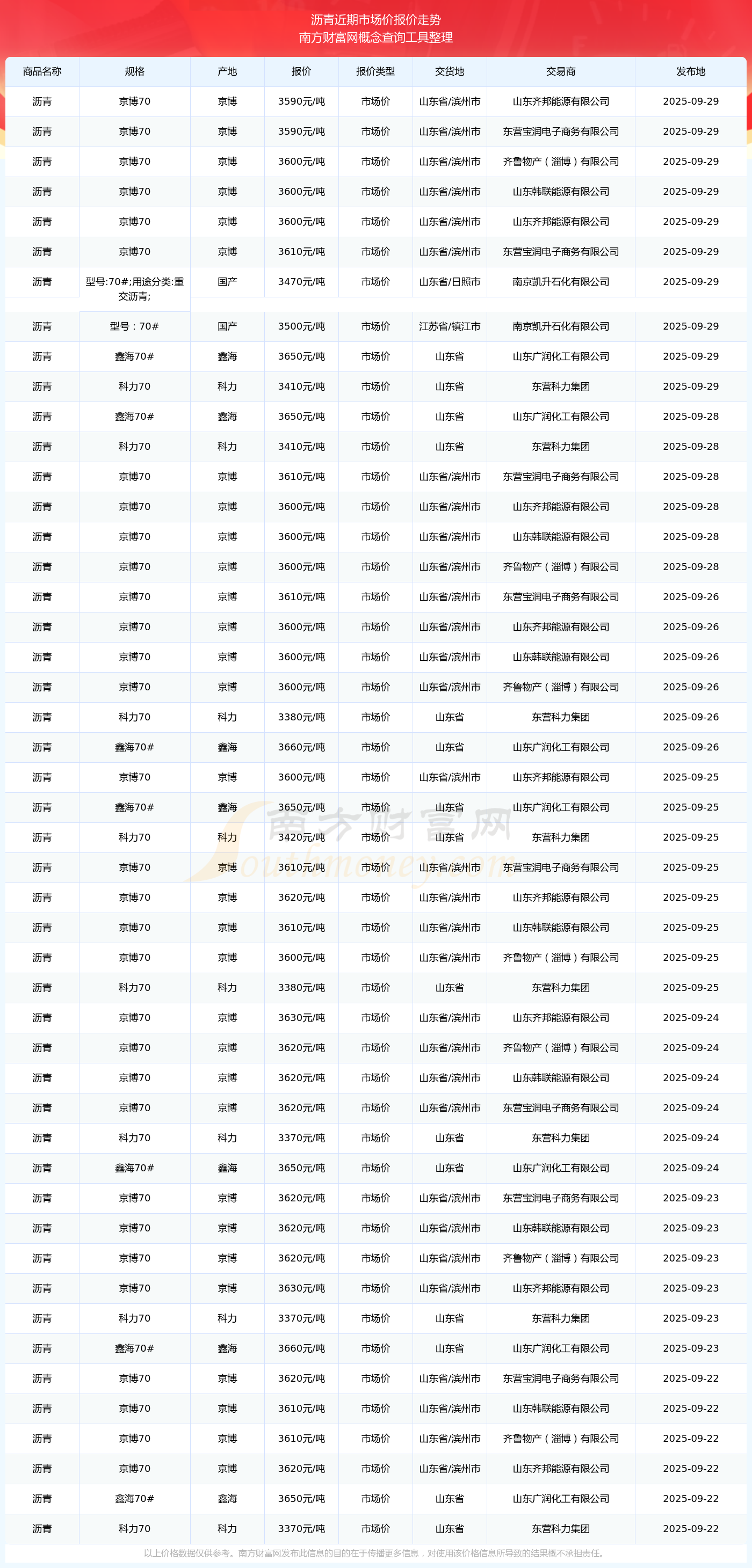 2025年9月29日瀝青市場(chǎng)價(jià)報(bào)價(jià)動(dòng)態(tài)