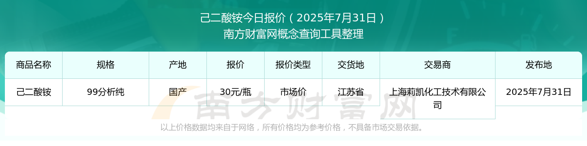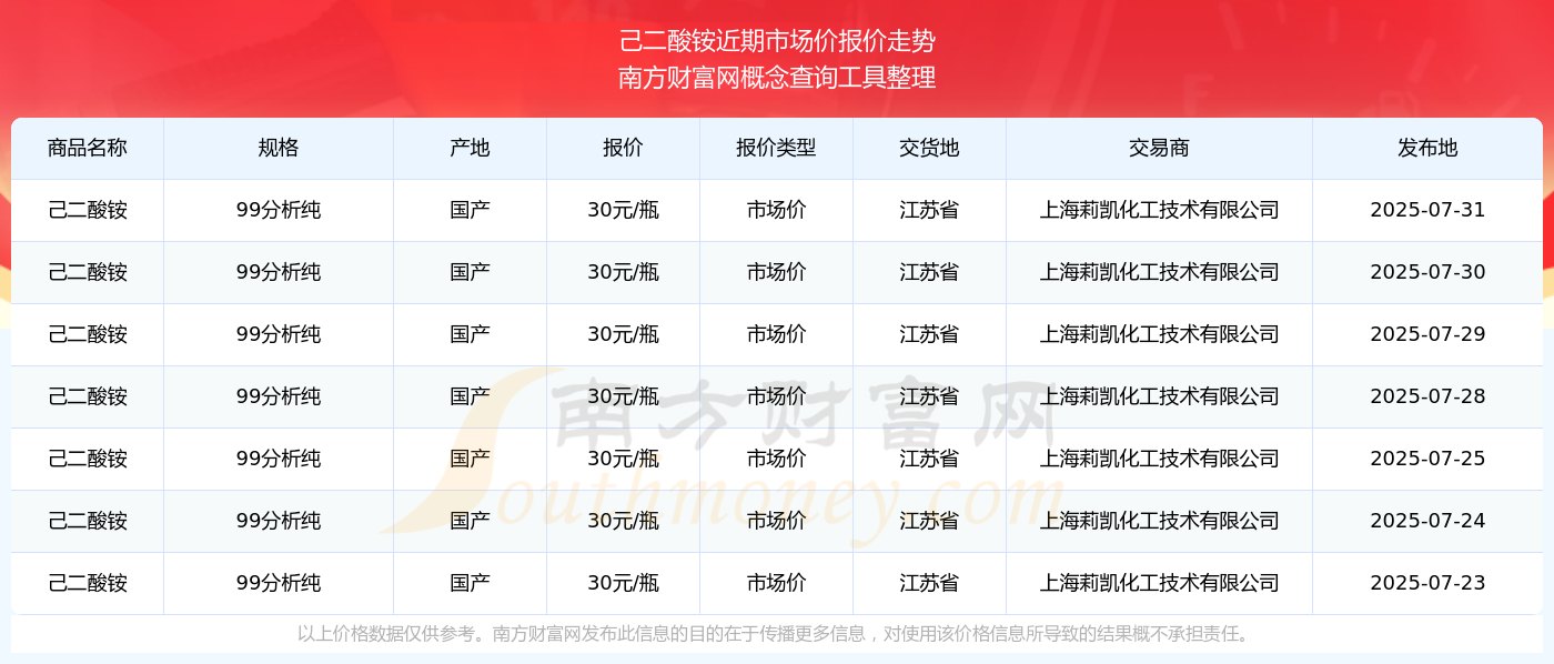 2025年7月31日己二酸銨市場(chǎng)價(jià)報(bào)價(jià)多少_近期價(jià)格走勢(shì)