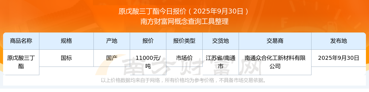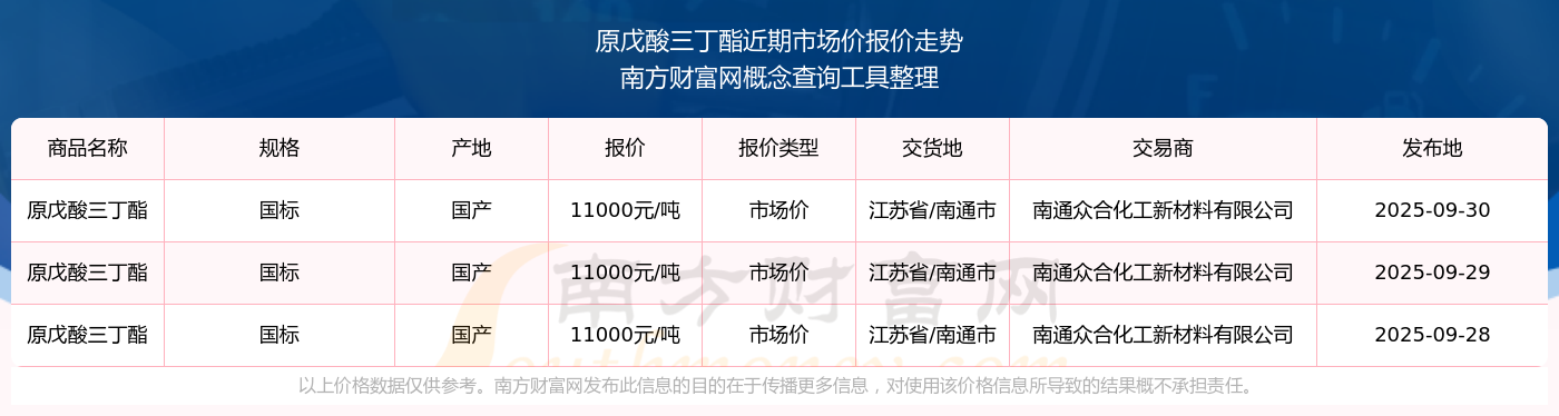 2025年9月30日原戊酸三丁酯市場價報價動態(tài)