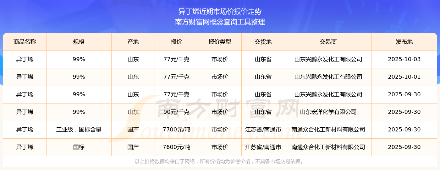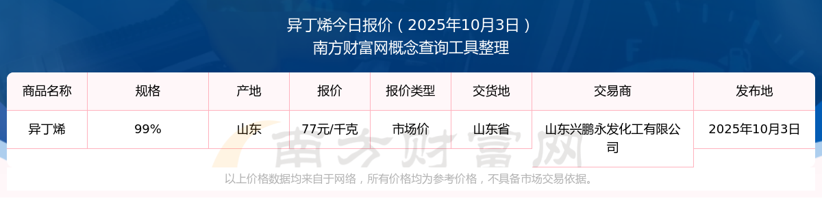 2025年10月3日異丁烯市場(chǎng)價(jià)報(bào)價(jià)多少_近期價(jià)格走勢(shì)