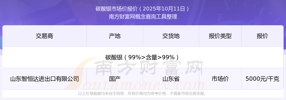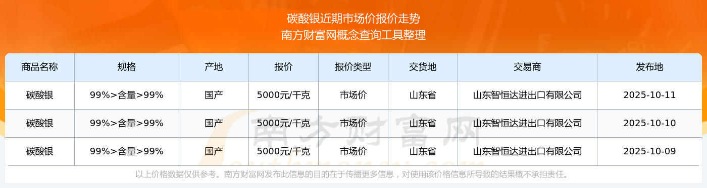 2025年10月11日碳酸銀市場價報價多少_近期價格走勢