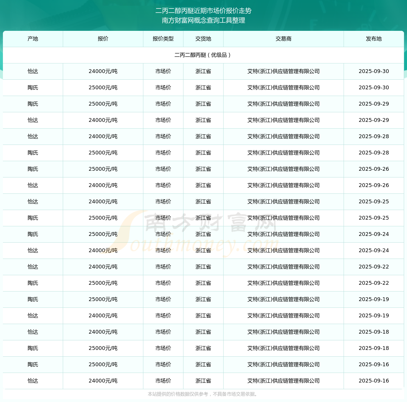 二丙二醇丙醚市場(chǎng)價(jià)報(bào)價(jià):2025年9月30日二丙二醇丙醚市場(chǎng)價(jià)多少錢