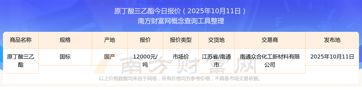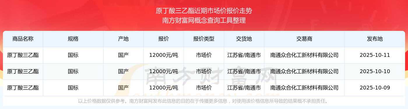 2025年10月11日原丁酸三乙酯市場價報價_原丁酸三乙酯近期市場價走勢