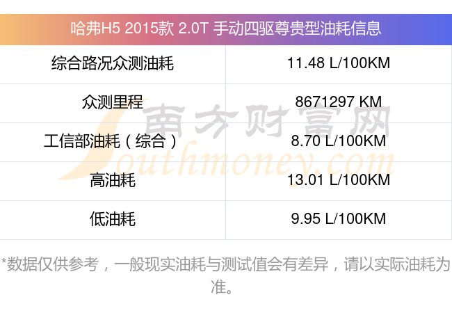 根據(jù)多位車主實測得出數(shù)據(jù),該車型低油耗為9.95升每百公里,高油耗為13.01升每百公里,綜合路況眾測油耗為11.48升每百公里,工信部綜合油耗為8.70升每百公里。
