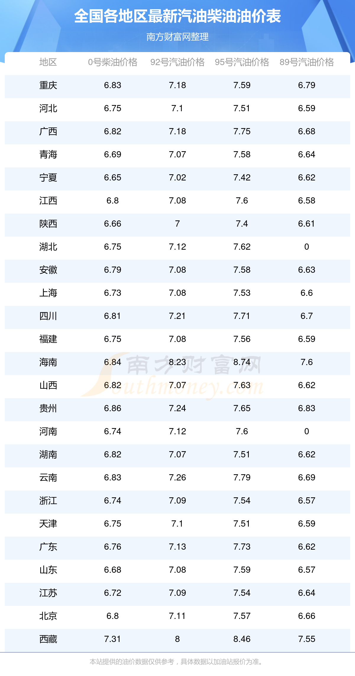 油價(jià)數(shù)據(jù)僅供參考,請(qǐng)以您所在地區(qū)的各加油站報(bào)價(jià)為準(zhǔn)。