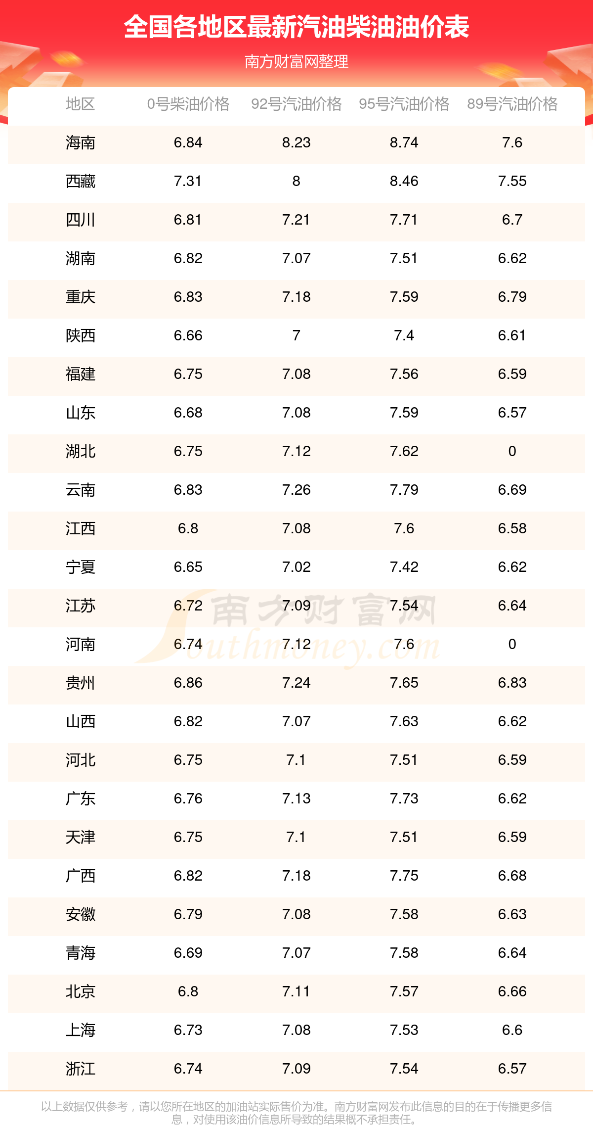2025年9月30日全國油價(jià)調(diào)整及最新汽油價(jià)格表