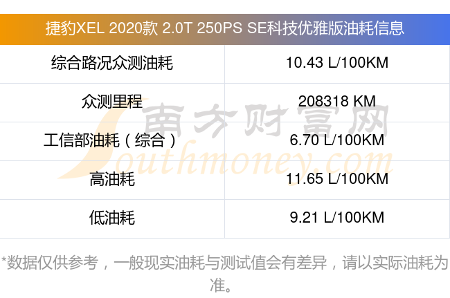 捷豹XEL 2020款 2.0T 250PS SE科技優(yōu)雅版油耗每公里多少錢(qián)?(10月12日)100公里多少錢(qián)?