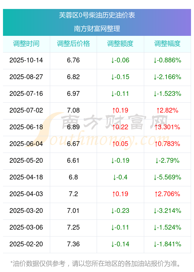10月16日芙蓉區(qū)0號(hào)柴油歷史油價(jià)調(diào)整一覽表