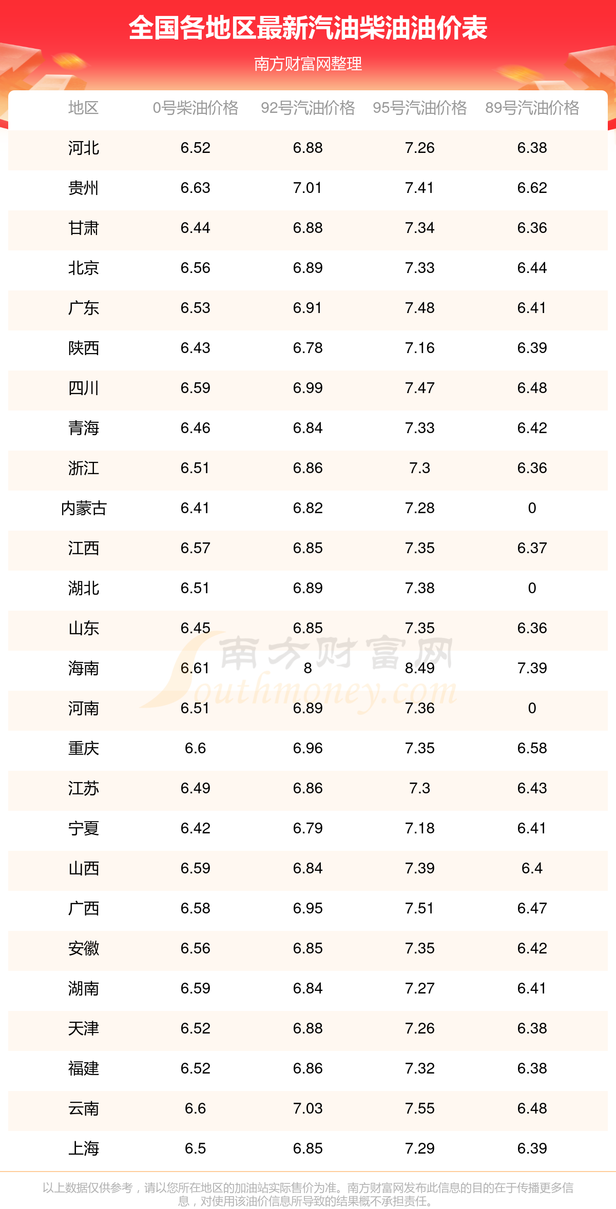 2025年12月6日全國(guó)油價(jià)調(diào)整及最新汽油價(jià)格表