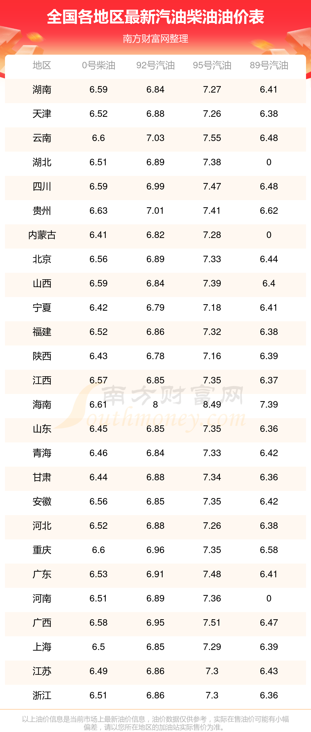 以上油價(jià)信息是當(dāng)前市場(chǎng)上最新油價(jià)信息,油價(jià)數(shù)據(jù)僅供參考,實(shí)際在售油價(jià)可能有小幅偏差,請(qǐng)以您所在地區(qū)的加油站實(shí)際售價(jià)為準(zhǔn)。
