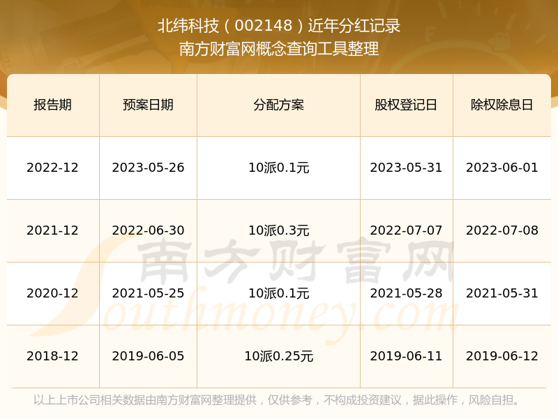 北緯科技最新一次公布的分紅方案:10派0.1元。
