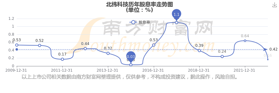 近年北緯科技年度股息率走勢(shì)如下圖:
