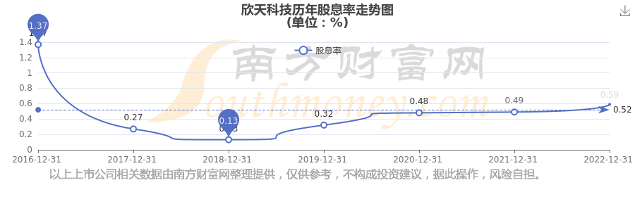 近年欣天科技年度股息率走勢(shì)如下圖: