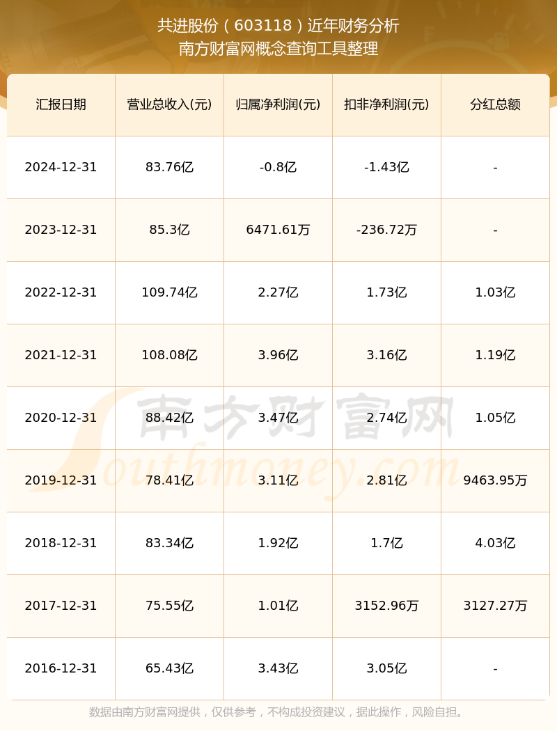 2024年公司總營收83.76億,同比增長-1.81%;凈利潤-7994.63萬,同比增長-223.53%;銷售毛利率11.54%。