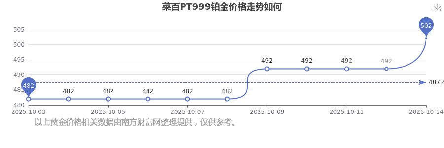 2025年10月15日菜百PT999鉑金價(jià)格最新為502.0元/克。