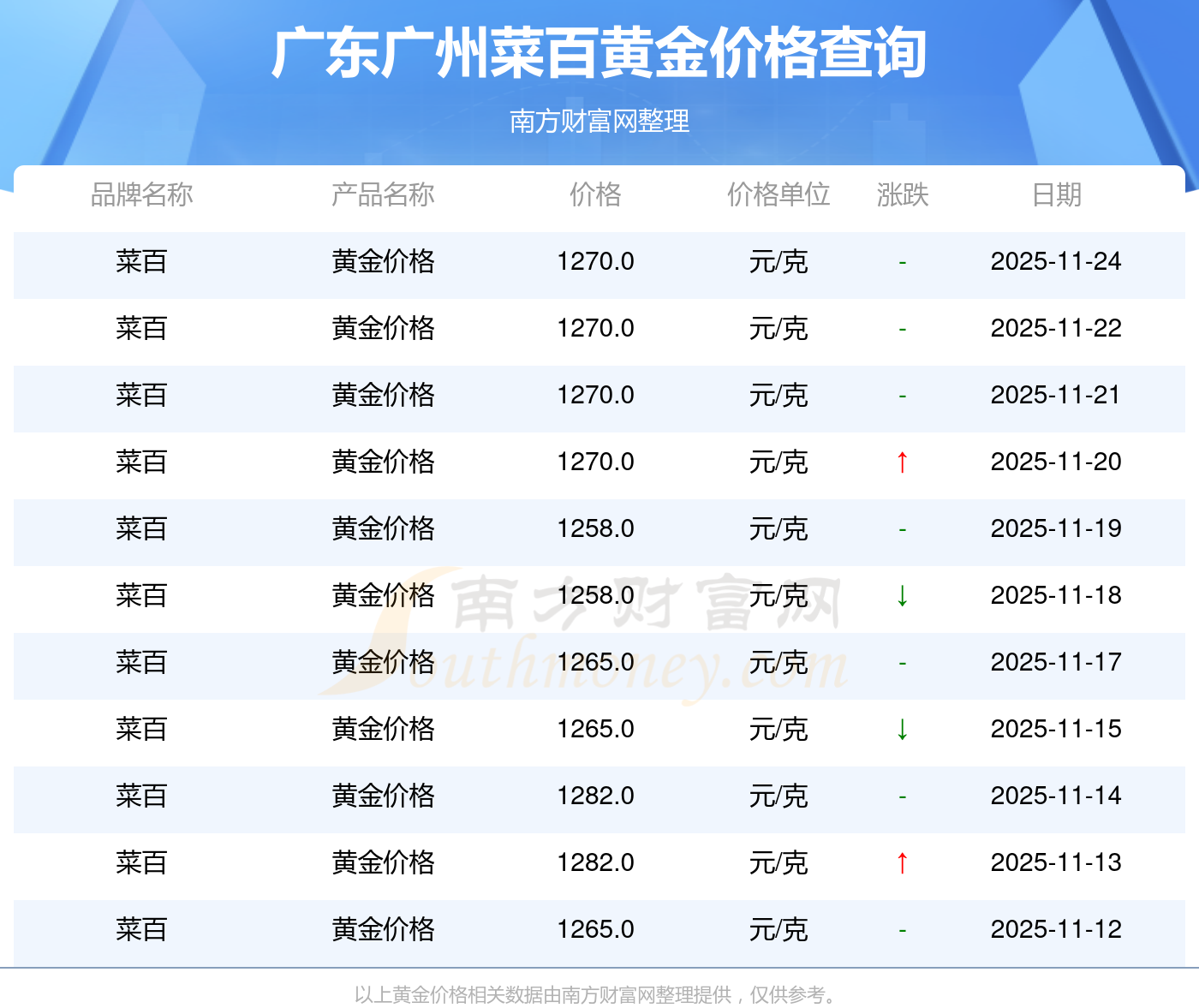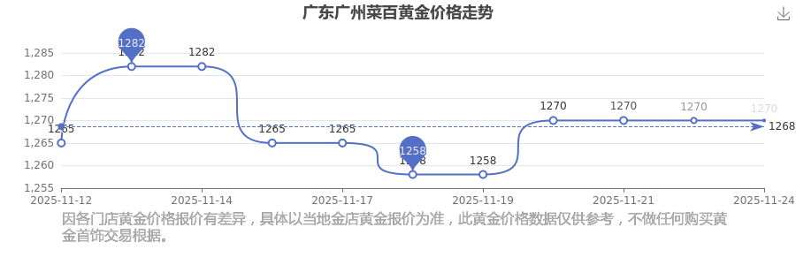 今日廣東廣州菜百黃金價(jià)格是1270.0元/克。