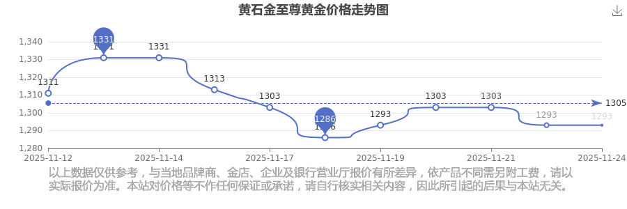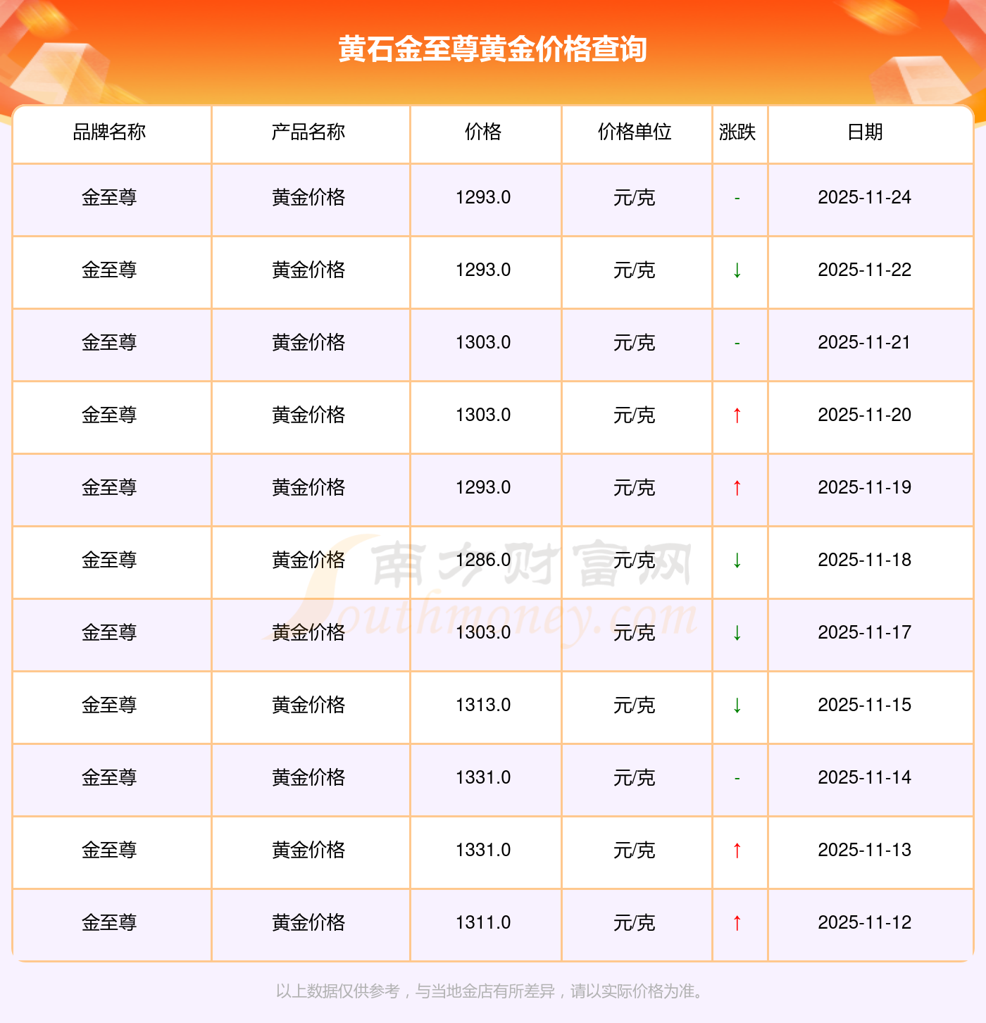 1293.0元/克的黃金價(jià)格,是黃石金至尊在 2025年11月24日給出的。