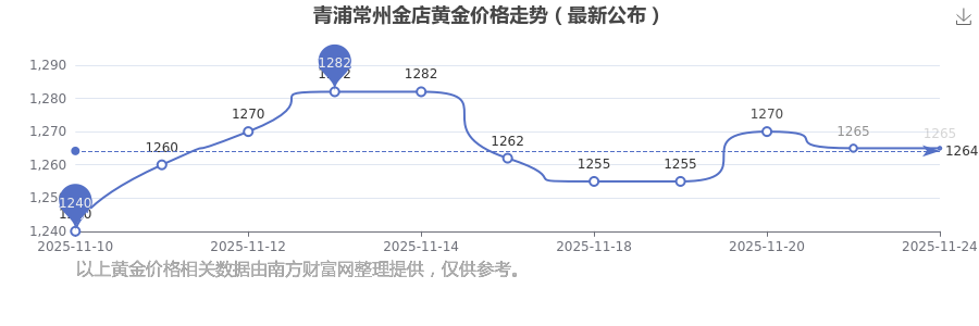 2025年11月24日青浦常州金店黃金價(jià)格為1265.0元/克。