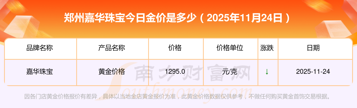 2025年11月24日鄭州嘉華珠寶金價(jià)查詢:鉑金價(jià)格(香港)17630.0,金條價(jià)格(香港)40570.0,金條金價(jià)(內(nèi)地)1134.0元/克,黃金價(jià)格1295.0元/克,鉑金價(jià)格600.0元/克,足金價(jià)格1295.0元/克,黃金價(jià)格1259.0元/克,鉑金價(jià)格590.0元/克,PT999鉑金價(jià)格590.0元/克,金條價(jià)格1154.0元/克,黃金價(jià)格1293.0元/克。