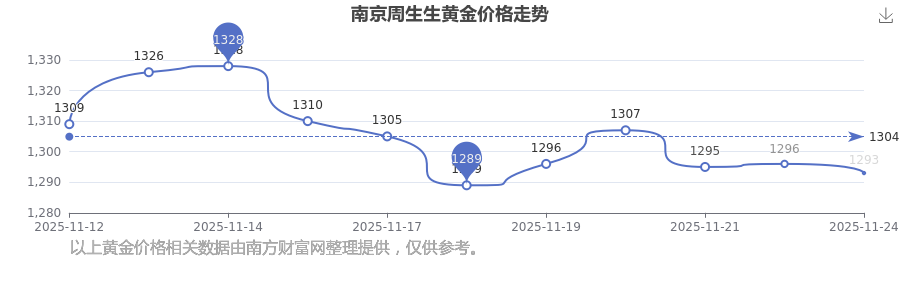 2025年11月24日,今日南京周生生黃金價格:1293.0元/克。