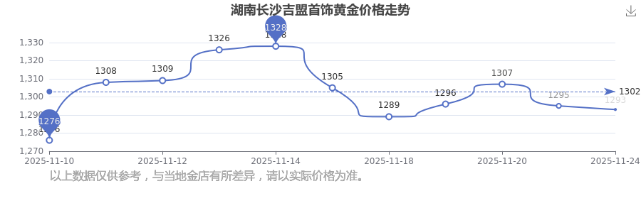 湖南長(zhǎng)沙吉盟首飾在 2025年11月24日的黃金價(jià)格零售價(jià)格為 1293.0元/克。