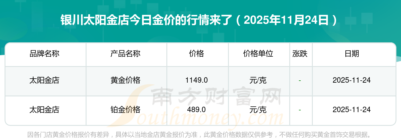 2025年11月24日銀川太陽金店一克黃金的售價是多少:鉑金價格(香港)17630.0,金條價格(香港)40570.0,金條金價(內(nèi)地)1134.0元/克,黃金價格1295.0元/克,鉑金價格600.0元/克,足金價格1295.0元/克,黃金價格1259.0元/克,鉑金價格590.0元/克,PT999鉑金價格590.0元/克,金條價格1154.0元/克,黃金價格1293.0元/克。