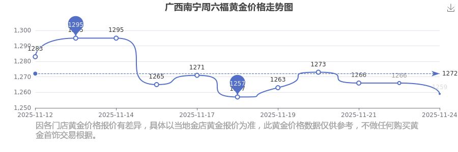 1259.0元/克的黃金價格,是廣西南寧周六福在 2025年11月24日給出的。