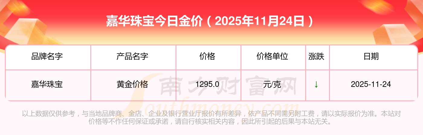 嘉華珠寶今天的黃金價(jià)值幾何?詳情如下: