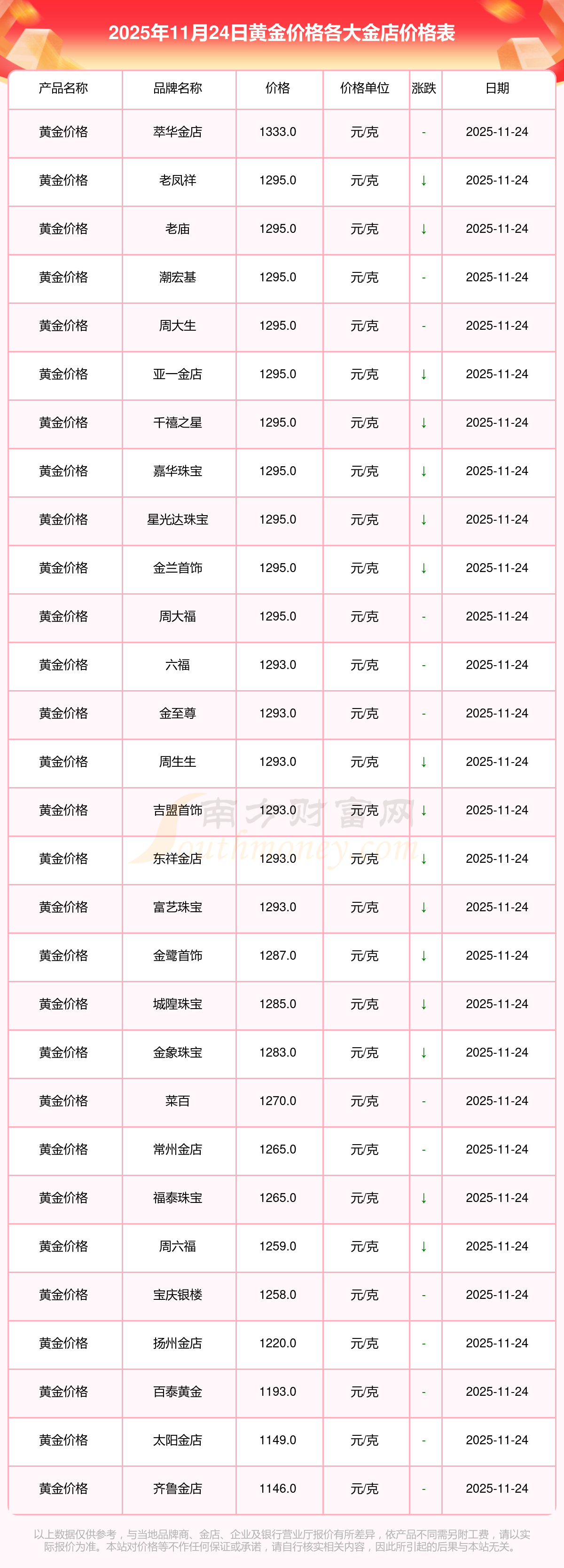 現(xiàn)在黃金價格多少錢1克_2025年11月24日各金店黃金價格最新