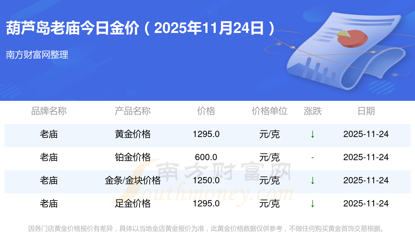 2025年11月24日葫蘆島老廟金價查詢:鉑金價格(香港)17630.0,金條價格(香港)40570.0,金條金價(內(nèi)地)1134.0元/克,黃金價格1295.0元/克,鉑金價格600.0元/克,足金價格1295.0元/克,黃金價格1259.0元/克,鉑金價格590.0元/克,PT999鉑金價格590.0元/克,金條價格1154.0元/克,黃金價格1293.0元/克。