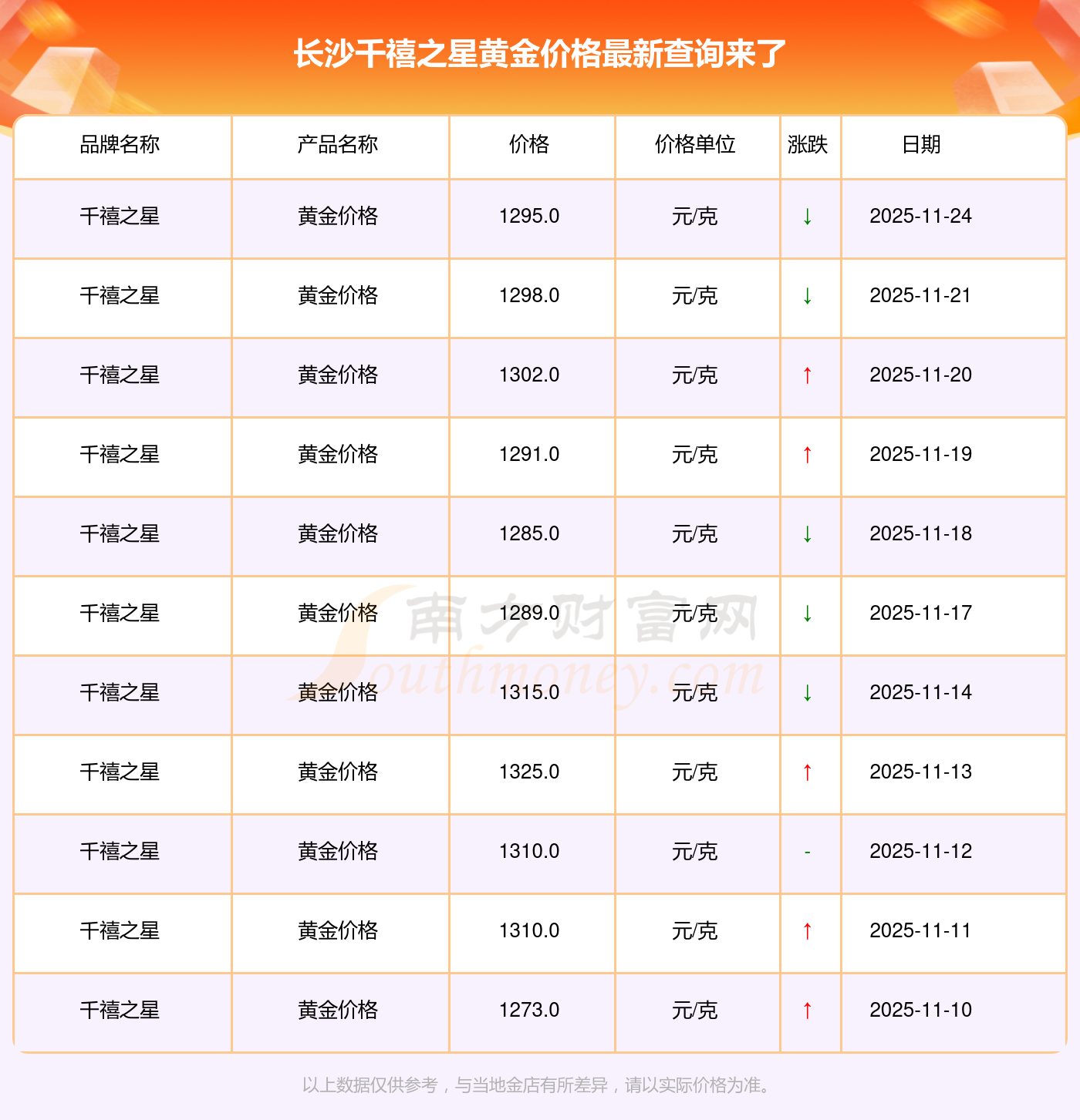 長(zhǎng)沙千禧之星黃金價(jià)格每克多少錢,今天黃金一克的價(jià)格具體是多少?今日長(zhǎng)沙千禧之星黃金價(jià)格查詢,今日長(zhǎng)沙千禧之星黃金價(jià)格是1295.0元/克。