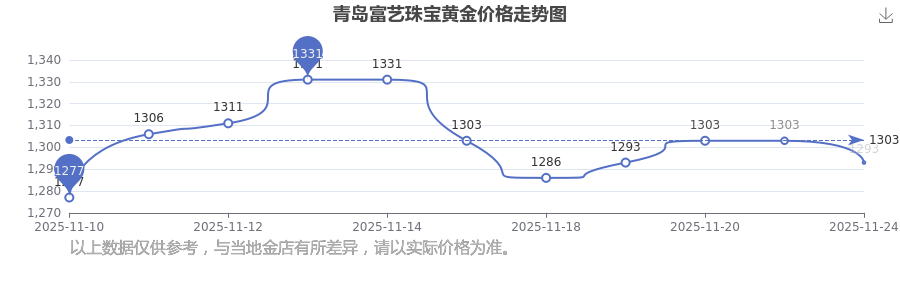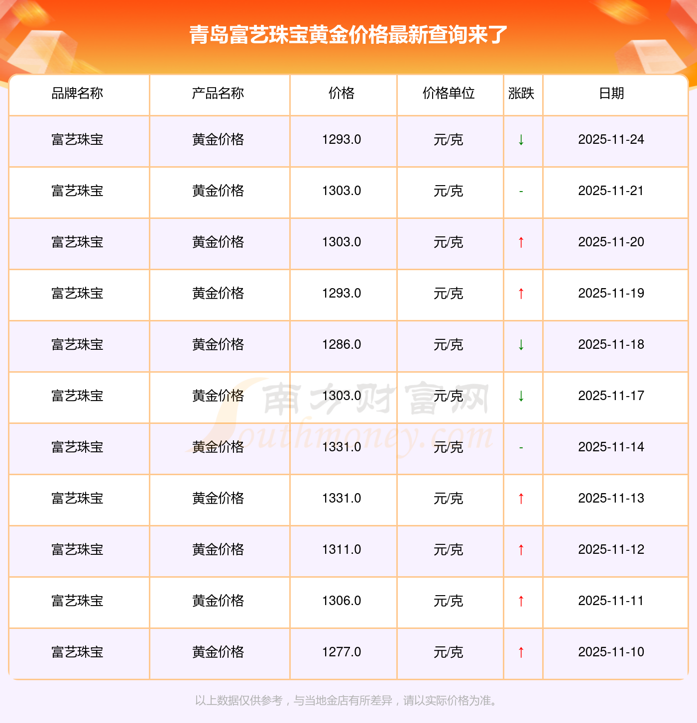 今日(2025年11月24日),1293.0元/克是青島富藝珠寶黃金價格的價格標準。