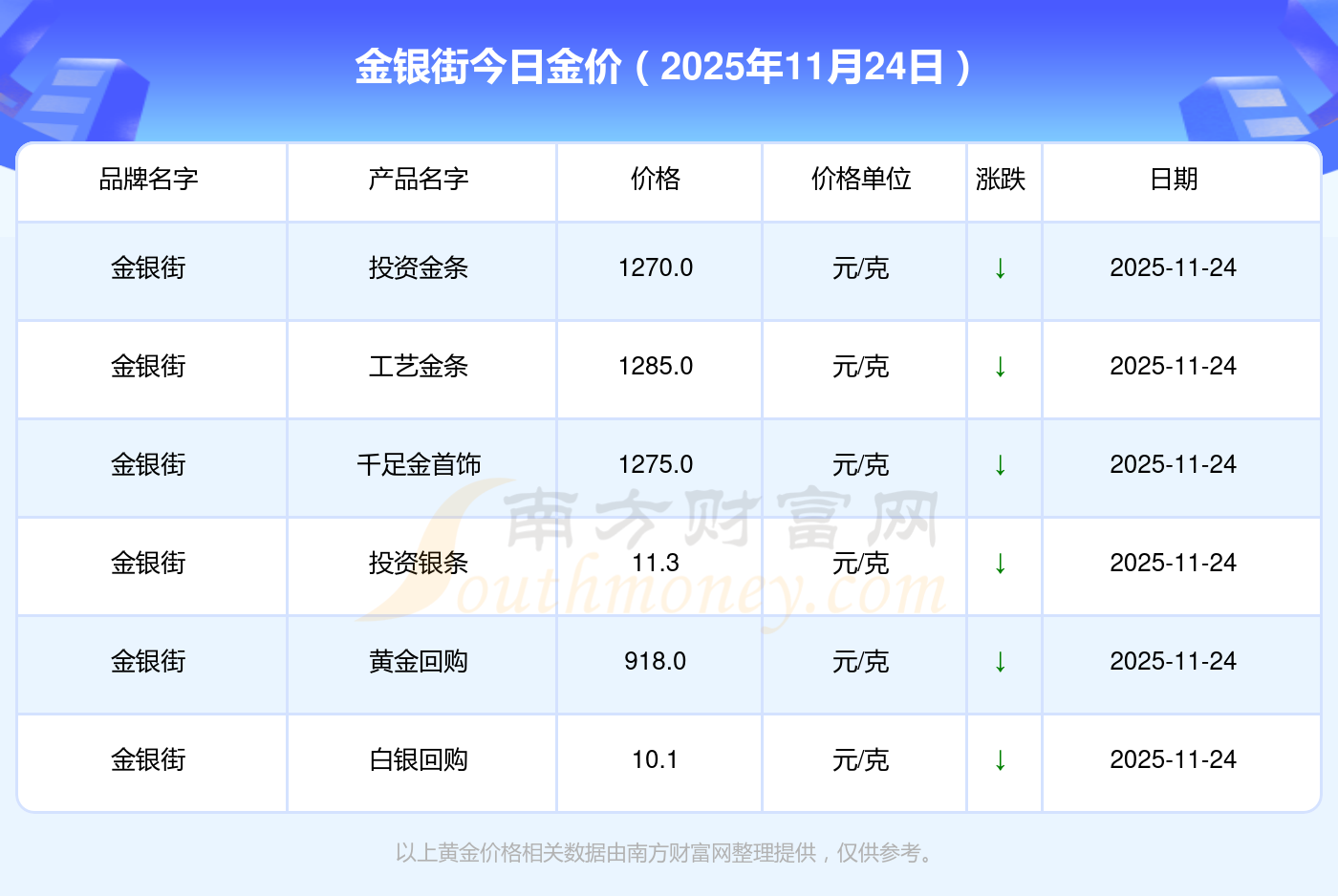 金銀街金價今日價格: