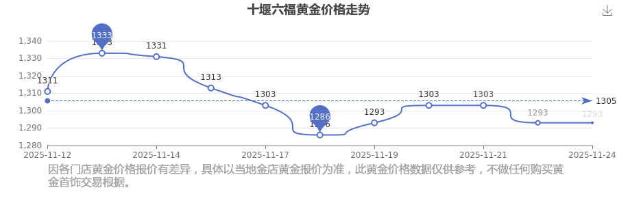 于 2025年11月24日,十堰六福黃金價(jià)格的克價(jià)為1293.0元/克。