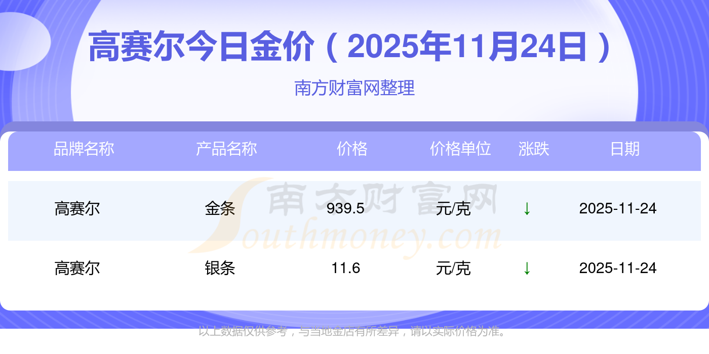 2025年11月24日高賽爾金條多少錢1克 現(xiàn)在吳忠高賽爾黃金價格查詢