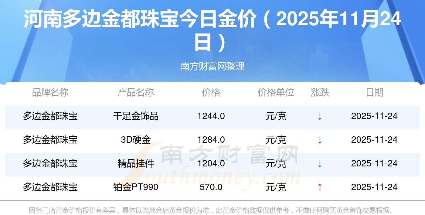 河南多邊金都珠寶今日金價(jià)多少錢一克