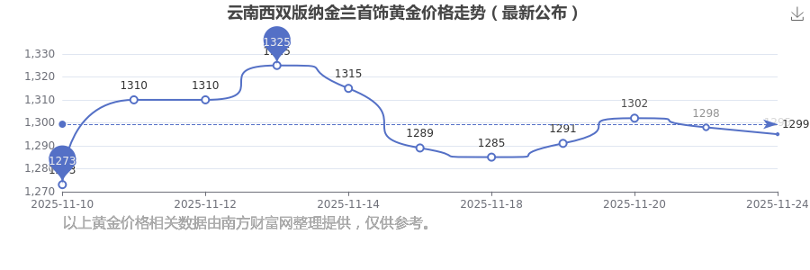 今日云南西雙版納金蘭首飾黃金價(jià)格最新價(jià)格是1295.0元/克。