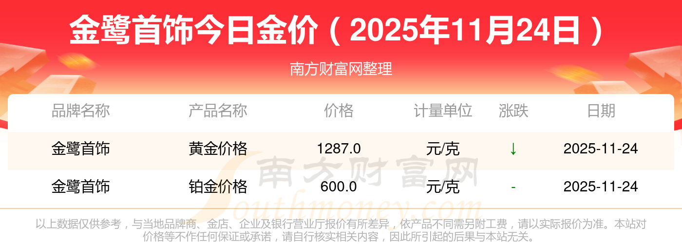 以上數(shù)據(jù)僅供參考,與當(dāng)?shù)仄放粕、金店、企業(yè)及銀行營(yíng)業(yè)廳報(bào)價(jià)有所差異,依產(chǎn)品不同需另附工費(fèi),請(qǐng)以實(shí)際報(bào)價(jià)為準(zhǔn)。本站對(duì)價(jià)格等不作任何保證或承諾,請(qǐng)自行核實(shí)相關(guān)內(nèi)容,因此所引起的后果與本站無關(guān)。