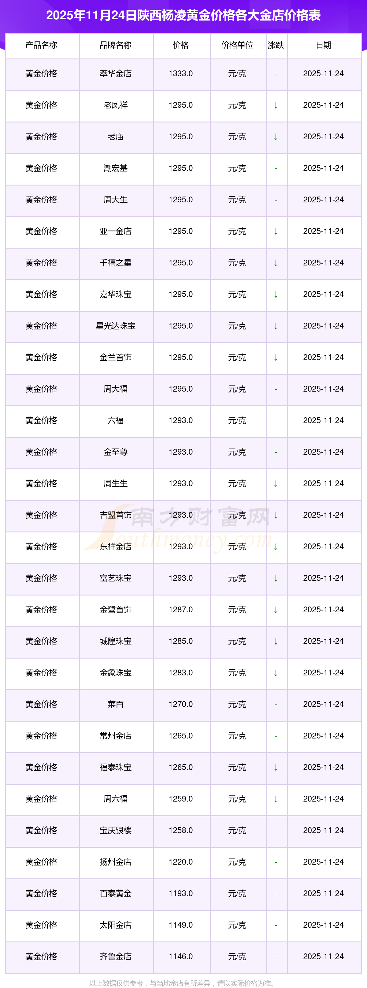 一、陜西楊凌各金店黃金價(jià)格表來(lái)了