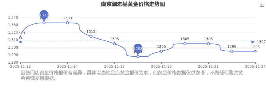 2025年11月24日,南京潮宏基的黃金價(jià)格標(biāo)價(jià)達(dá)到 1295.0元/克。