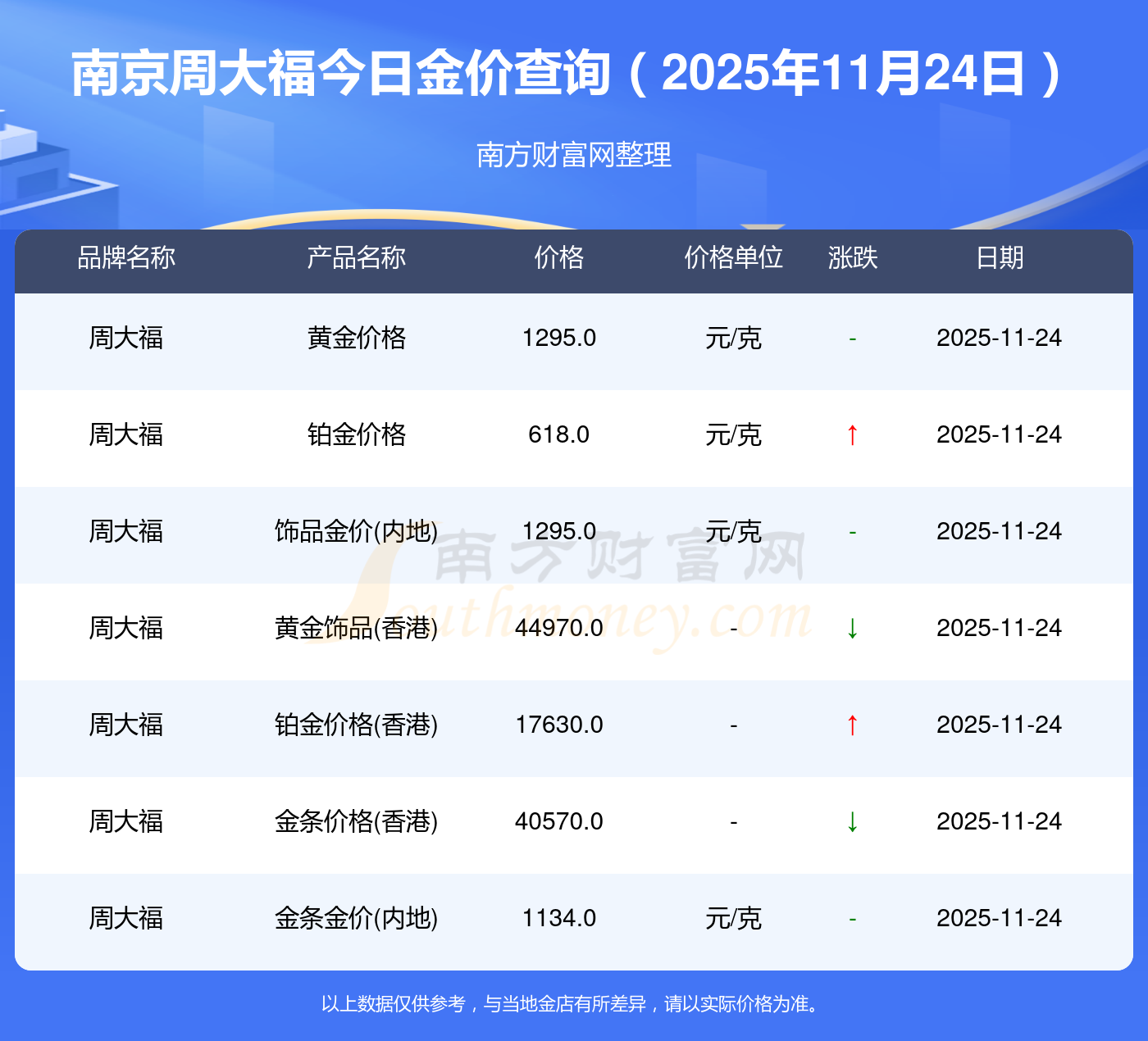 鉑金價格(香港)17630.0,金條價格(香港)40570.0,金條金價(內(nèi)地)1134.0元/克,黃金價格1295.0元/克,鉑金價格600.0元/克,足金價格1295.0元/克,黃金價格1259.0元/克,鉑金價格590.0元/克,PT999鉑金價格590.0元/克,金條價格1154.0元/克,黃金價格1293.0元/克。