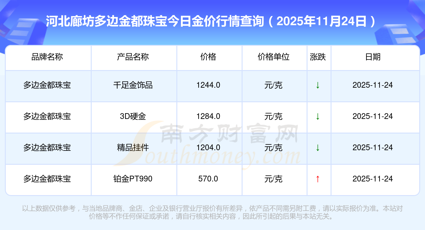 今天黃金價格是多少?現(xiàn)在黃金一克的價錢是怎樣的?2025年11月24日河北廊坊多邊金都珠寶今日價格:鉑金價格(香港)17630.0,金條價格(香港)40570.0,金條金價(內(nèi)地)1134.0元/克,黃金價格1295.0元/克,鉑金價格600.0元/克,足金價格1295.0元/克,黃金價格1259.0元/克,鉑金價格590.0元/克,PT999鉑金價格590.0元/克,金條價格1154.0元/克,黃金價格1293.0元/克。