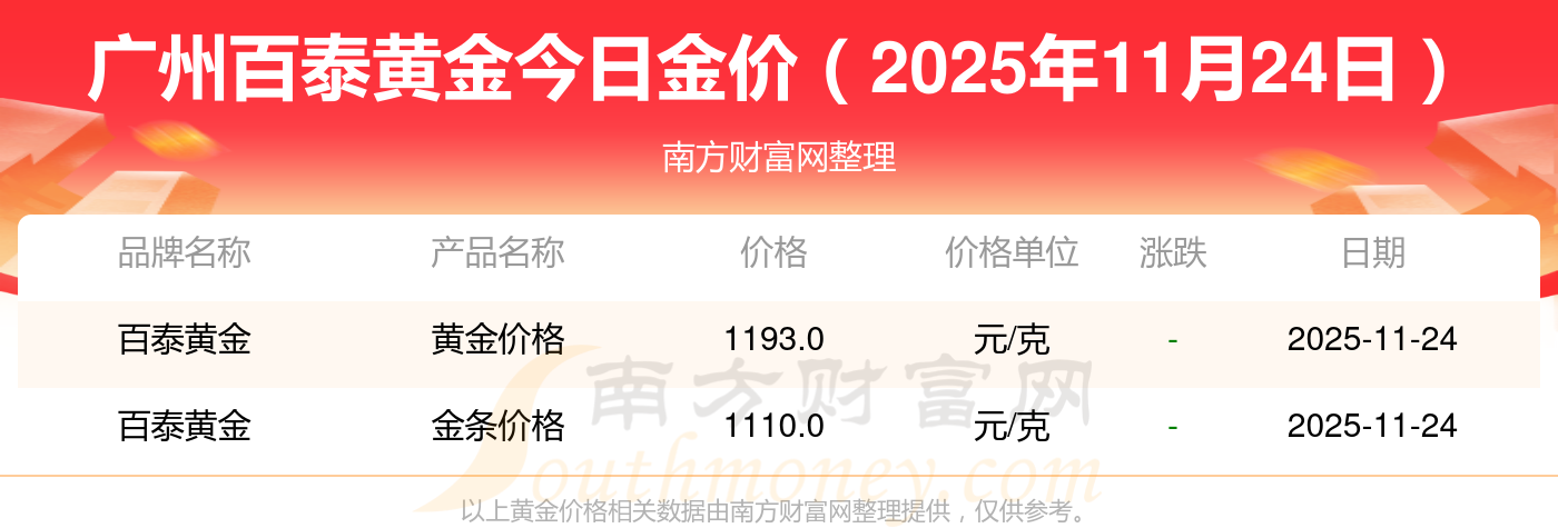 2025年11月24日百泰黃金金條多少錢1克 現(xiàn)在廣州百泰黃金黃金價格查詢