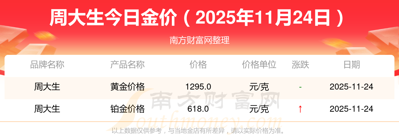 今天是2025年11月24日,周大福、周大福、周大福、老鳳祥、老鳳祥、老鳳祥、周六福、周六福、周六福、周六福、六福等各大金店品牌鉑金價(jià)格最新價(jià)格如下:周大福17630.0、周大福40570.0、周大福1134.0元/克、老鳳祥1295.0元/克、老鳳祥600.0元/克、老鳳祥1295.0元/克、周六福1259.0元/克、周六福590.0元/克、周六福590.0元/克、周六福1154.0元/克、六福1293.0元/克。