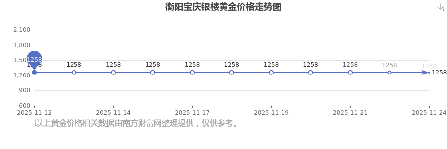 衡陽寶慶銀樓在 2025年11月24日,黃金價格的售賣價格是 1258.0元/克。