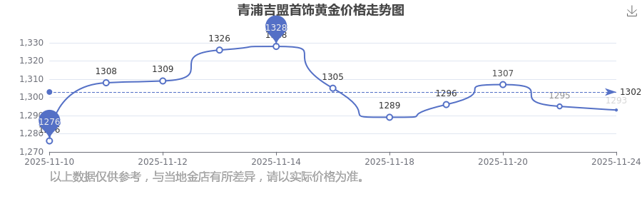 1293.0元/克,此乃青浦吉盟首飾于 2025年11月24日黃金價(jià)格的掛牌價(jià)格。