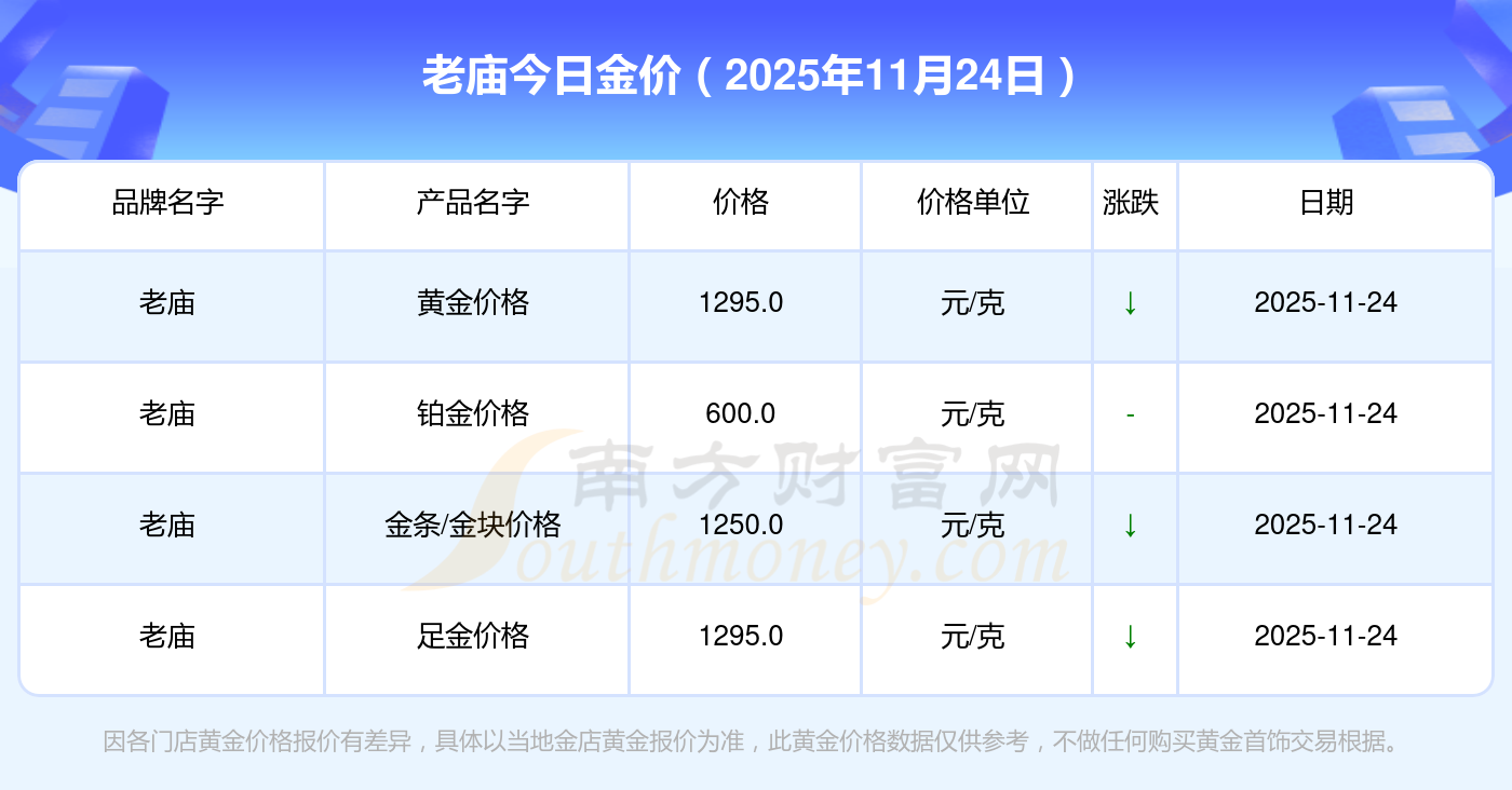 今天是2025年11月24日,周大福、周大福、周大福、老鳳祥、老鳳祥、老鳳祥、周六福、周六福、周六福、周六福、六福等各大金店品牌足金價格最新價格如下:周大福17630.0、周大福40570.0、周大福1134.0元/克、老鳳祥1295.0元/克、老鳳祥600.0元/克、老鳳祥1295.0元/克、周六福1259.0元/克、周六福590.0元/克、周六福590.0元/克、周六福1154.0元/克、六福1293.0元/克。