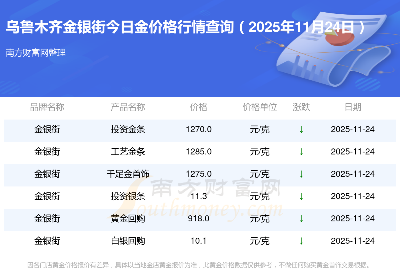 烏魯木齊金銀街現在購買一克黃金需要支付多少錢?
