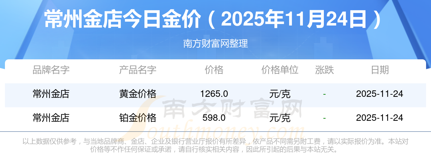 常州金店金價(jià)今日價(jià)格: