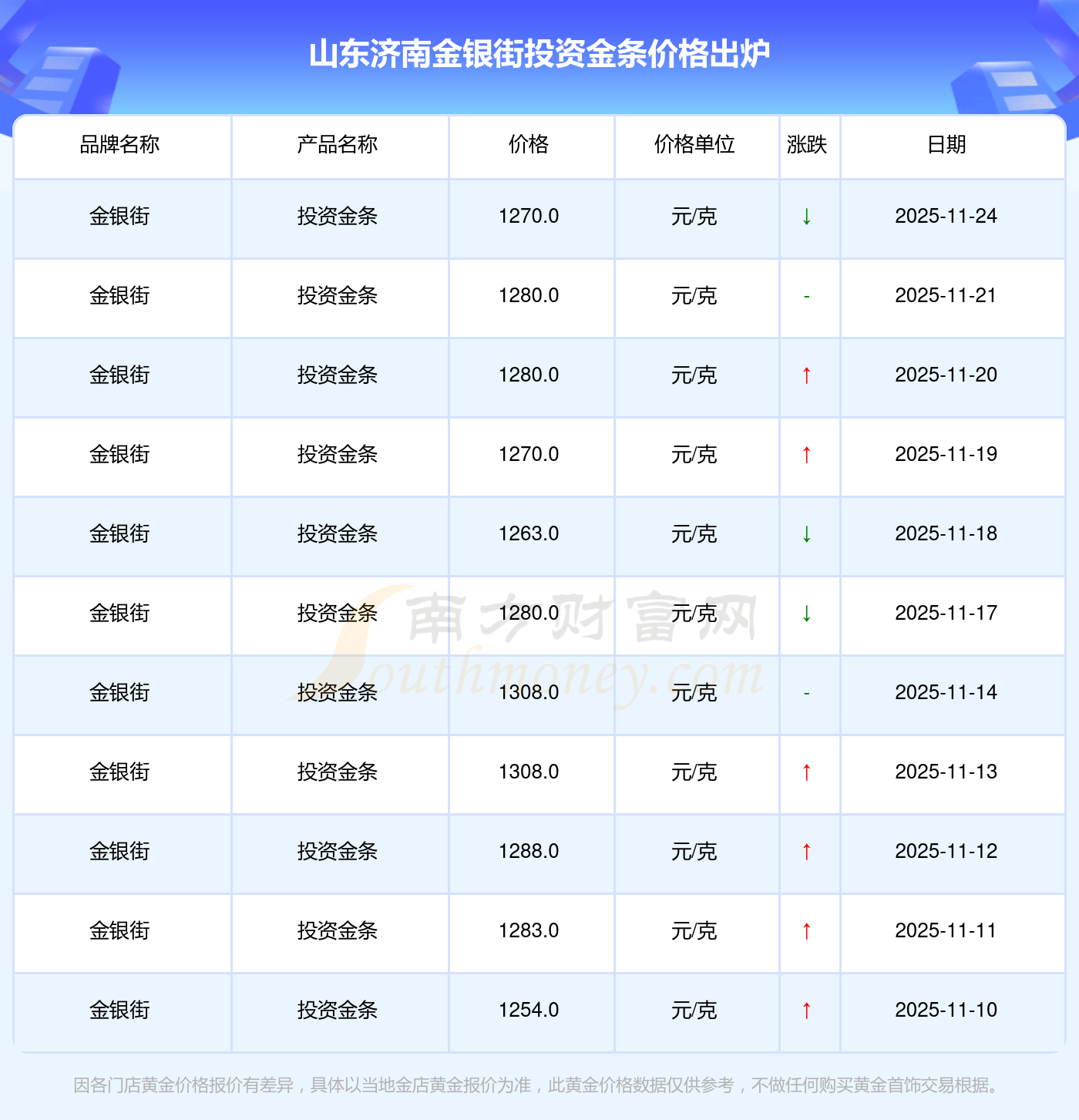 今日山東濟(jì)南金銀街投資金條的價(jià)格為1270.0元/克。